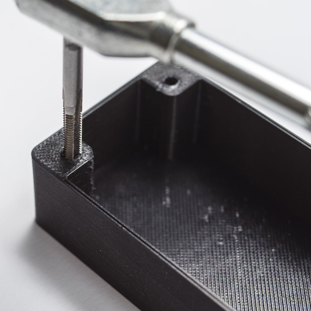 1. 3D print or drill a hole in the required location of the thread. For pilot hole (tap drill) sizes that correspond to each thread size refer here